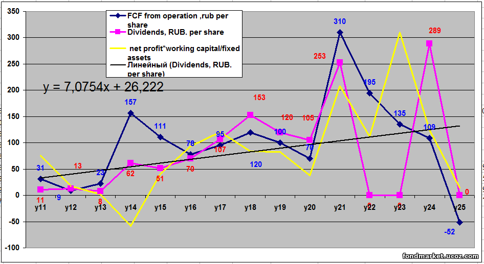 If we evaluate the overall picture, then stock prices are trading below the linearly approximated trend, which coincides with the dividend line for eight future years.<